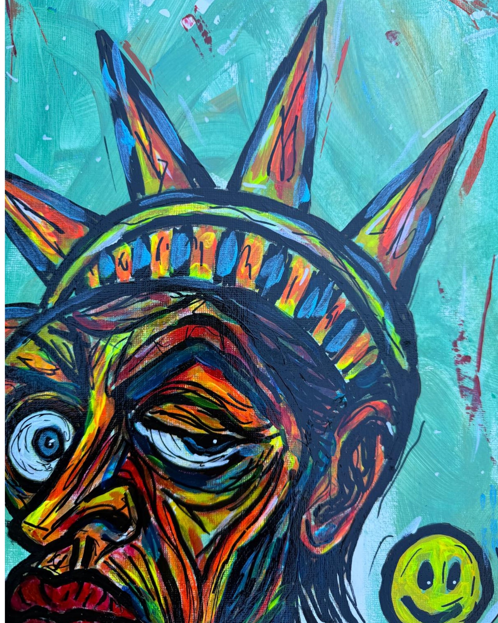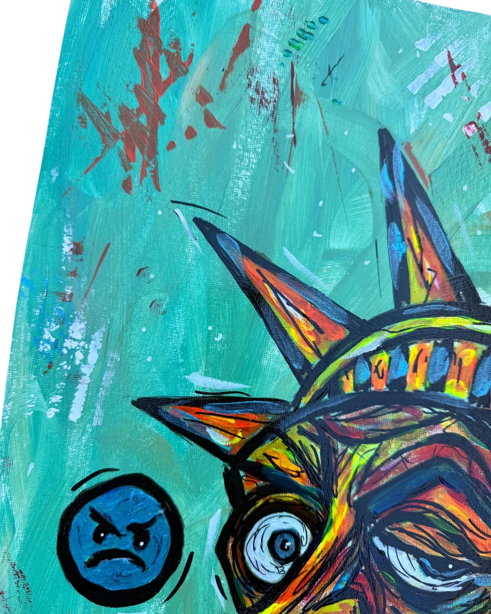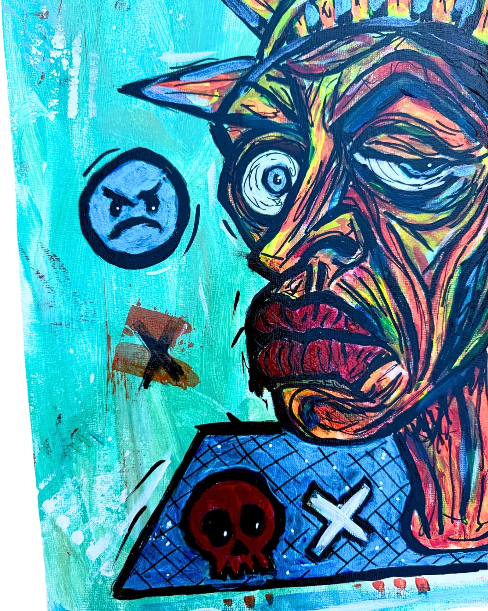 This original artwork explores energy, vitality, and inconformism through gesture and tension. The painting focuses on presence rather than form, reducing the image to what truly matters: movement, pressure, and character.